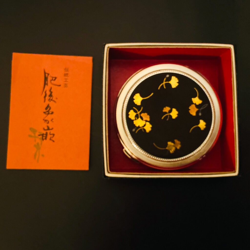 This Higo zogan compact captures the quiet elegance of Japanese inlay artistry.